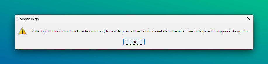 Enfin, un message vous informe que votre ancien identifiant a été supprimé et que votre compte est désormais lié à l’adresse e-mail saisie.