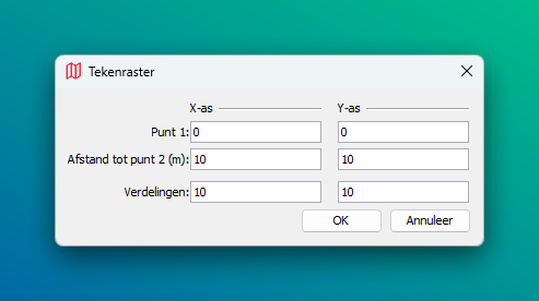 Wanneer we het raster activeren moeten we opgeven welke verdelingen we wensen: