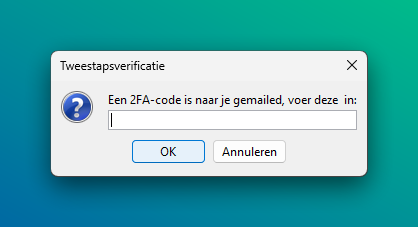 U ontvangt nu een 2FA-code (6 cijfers) op het ingevoerde e-mailadres. Vul deze code in.