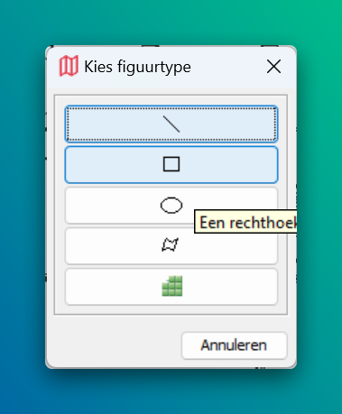 Afhankelijk van wat je wil tekenen kies je nu de juiste tekentool. Wij kiezen nu de bovenste tool (de lijntool) om een compartiment in te tekenen.