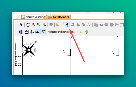 Wil je een icoon verplaatsen dan moet je dit eerst selecteren. Dit doe je met de selectietool bovenaan de tekening.