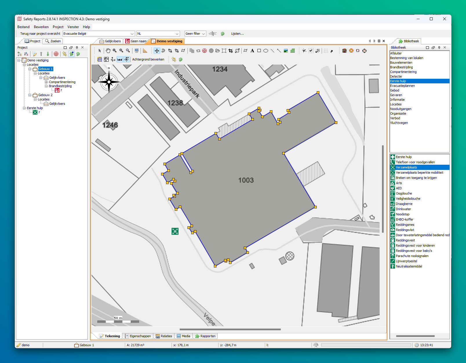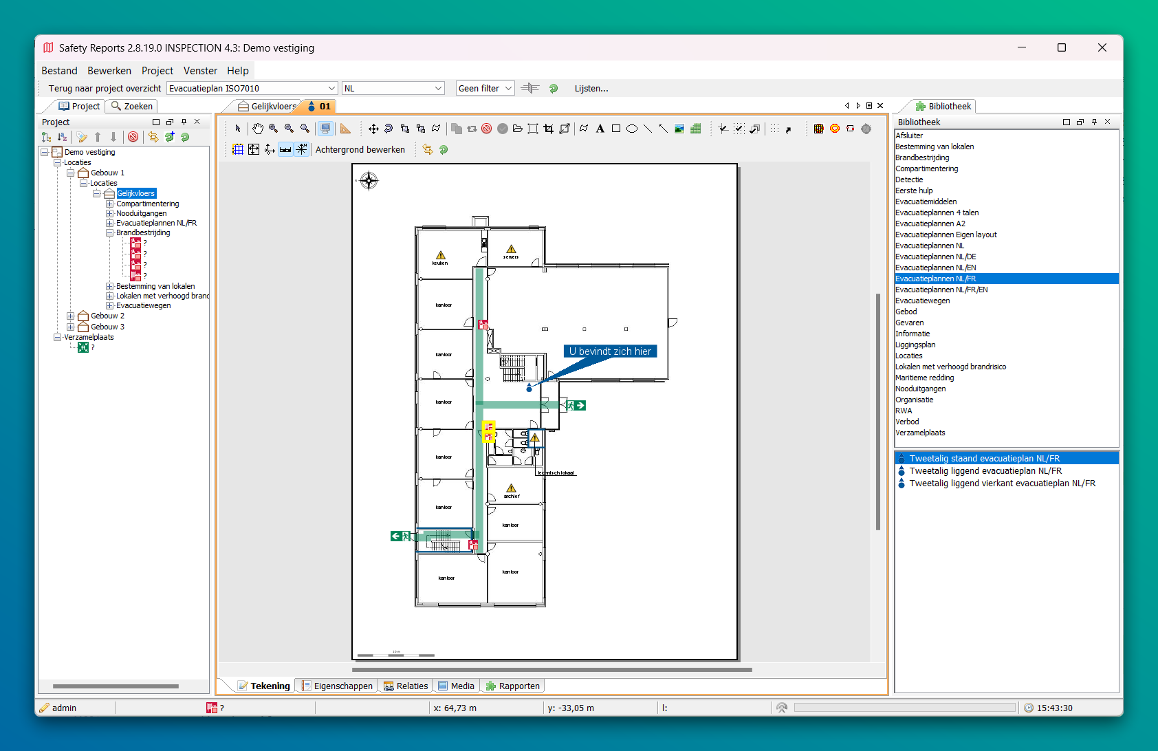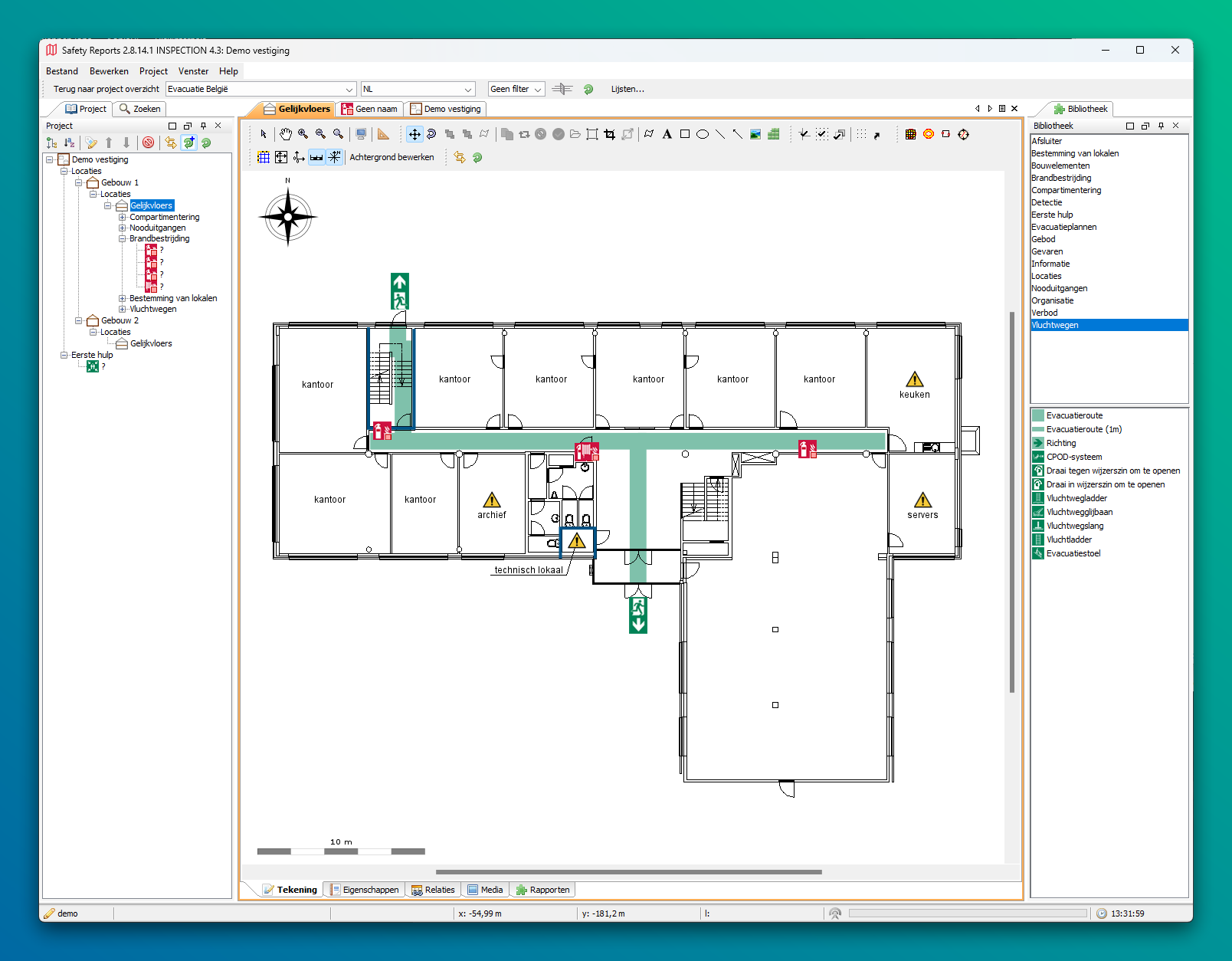 Met Safety Reports kan u evacuatieplannen maken die voldoen aan de Belgische wetgeving (Codex welzijn op het werk) en die gebaseerd zijn op de ISO 23601 standaard.