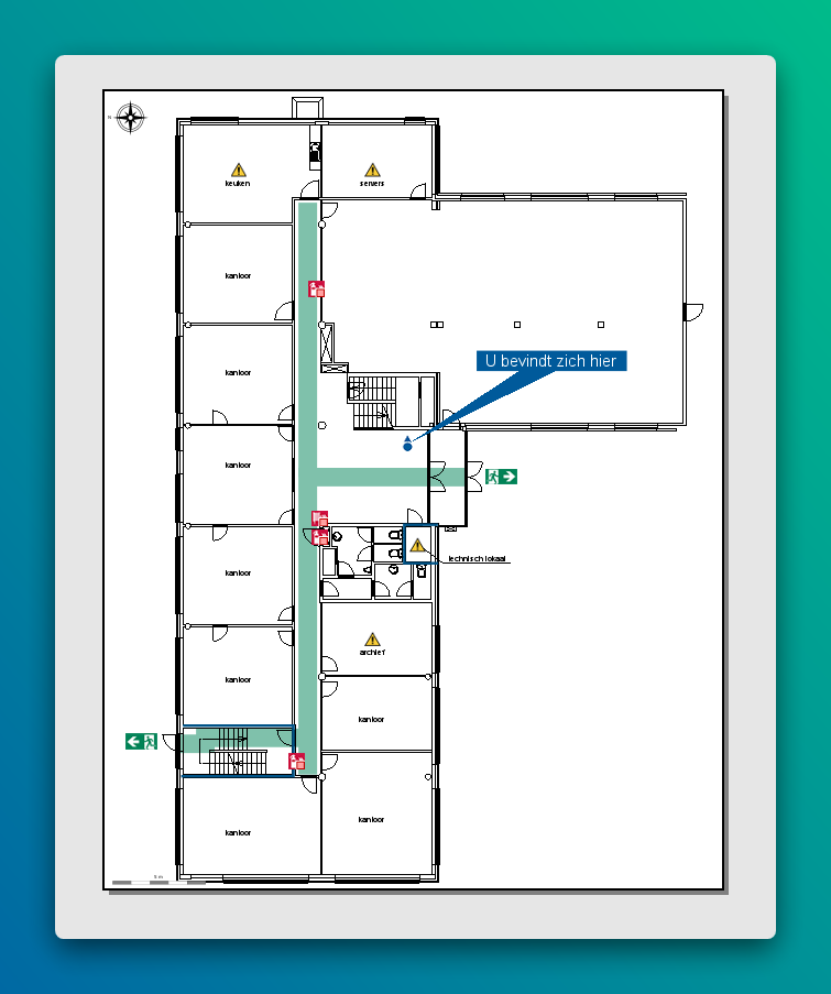 Wanneer je tevreden bent over de layout van het evacuatieplan gaan we het plan uitsnijden naar deze layout.