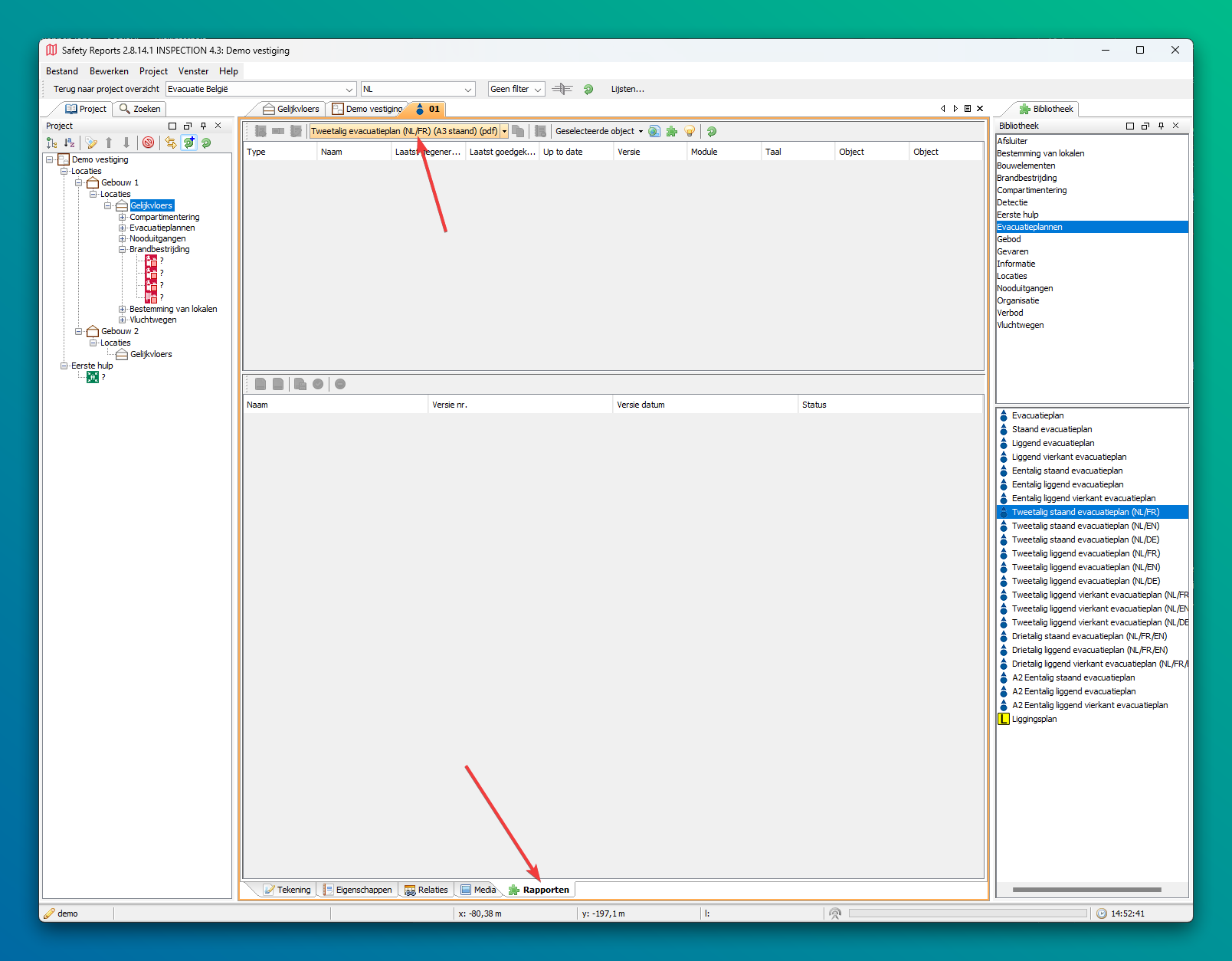 Nu de layout van het evacuatieplan klaar is kunnen we een rapport maken.