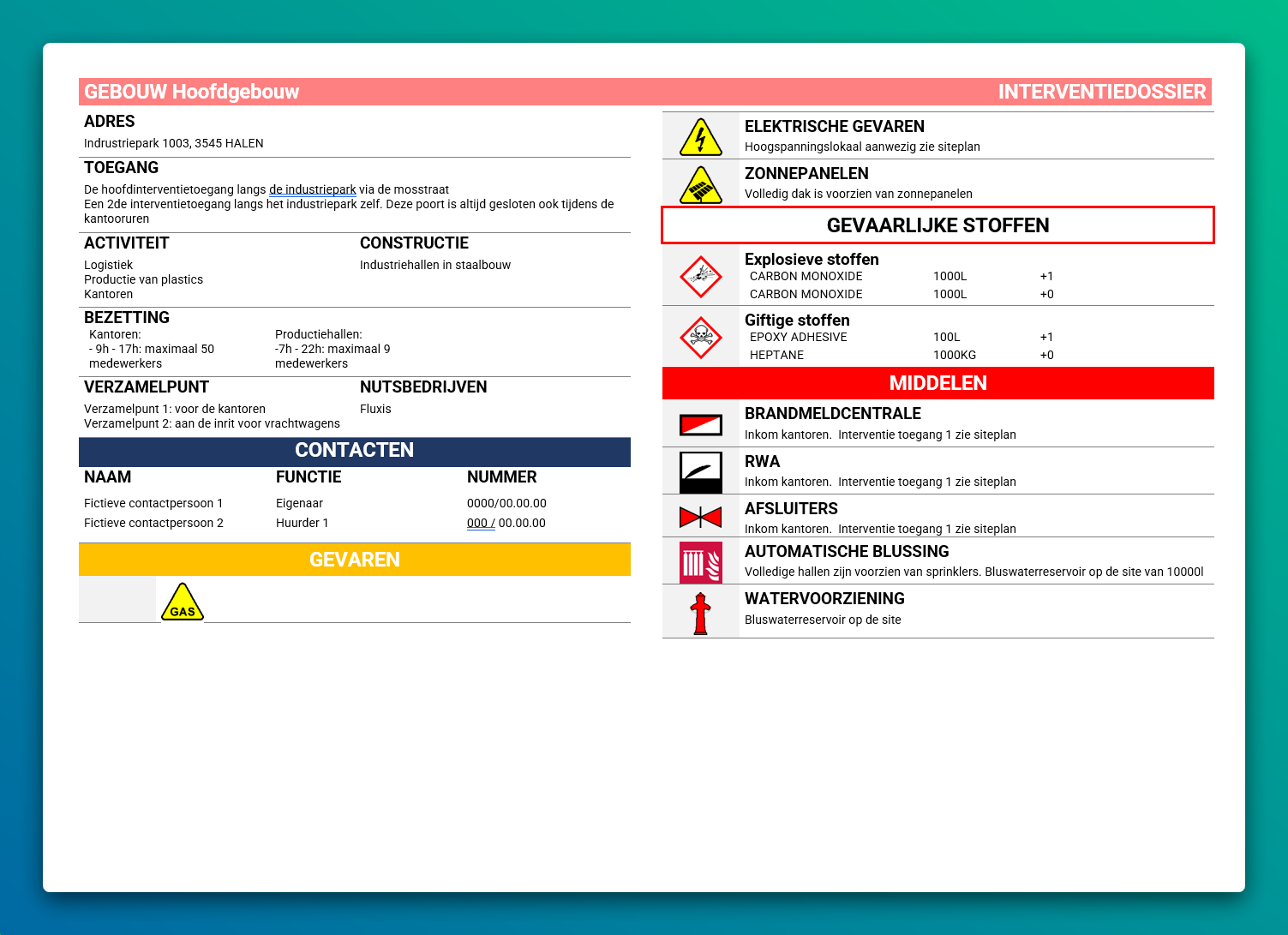In het interventiedossie voorzien we de contacten die snel ter plaatse kunnen zijn tijdens een incident. Het heeft geen zin om hier administratieve contacten op te nemen.