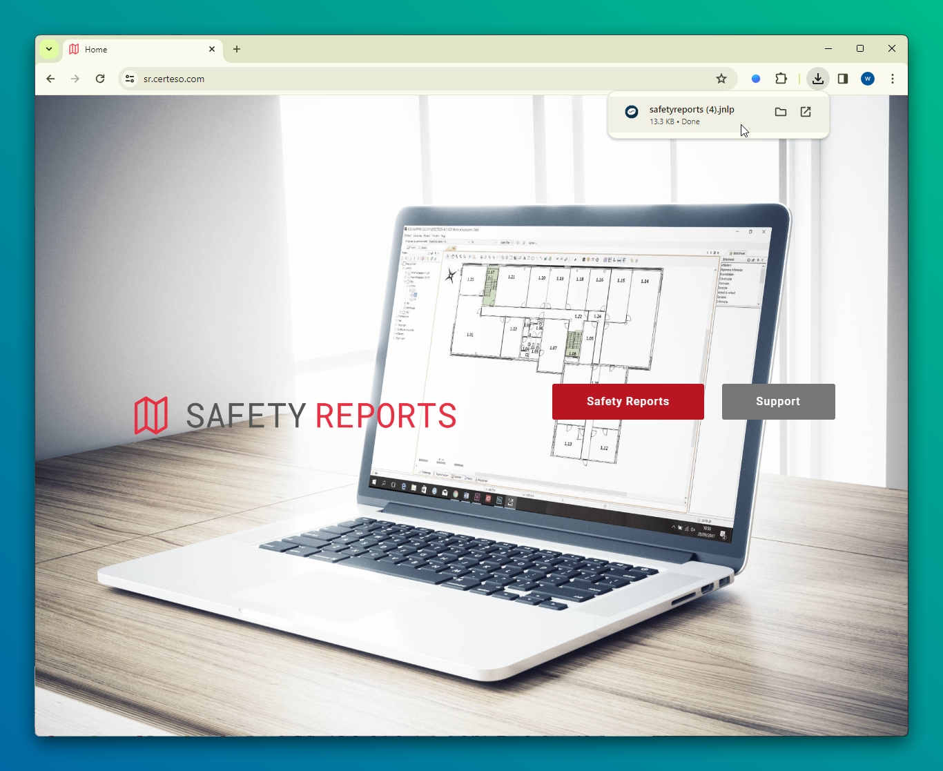 Een bestand "safetyreports.jnlp" wordt gedownload. Open dit bestand om Safety Reports te starten.