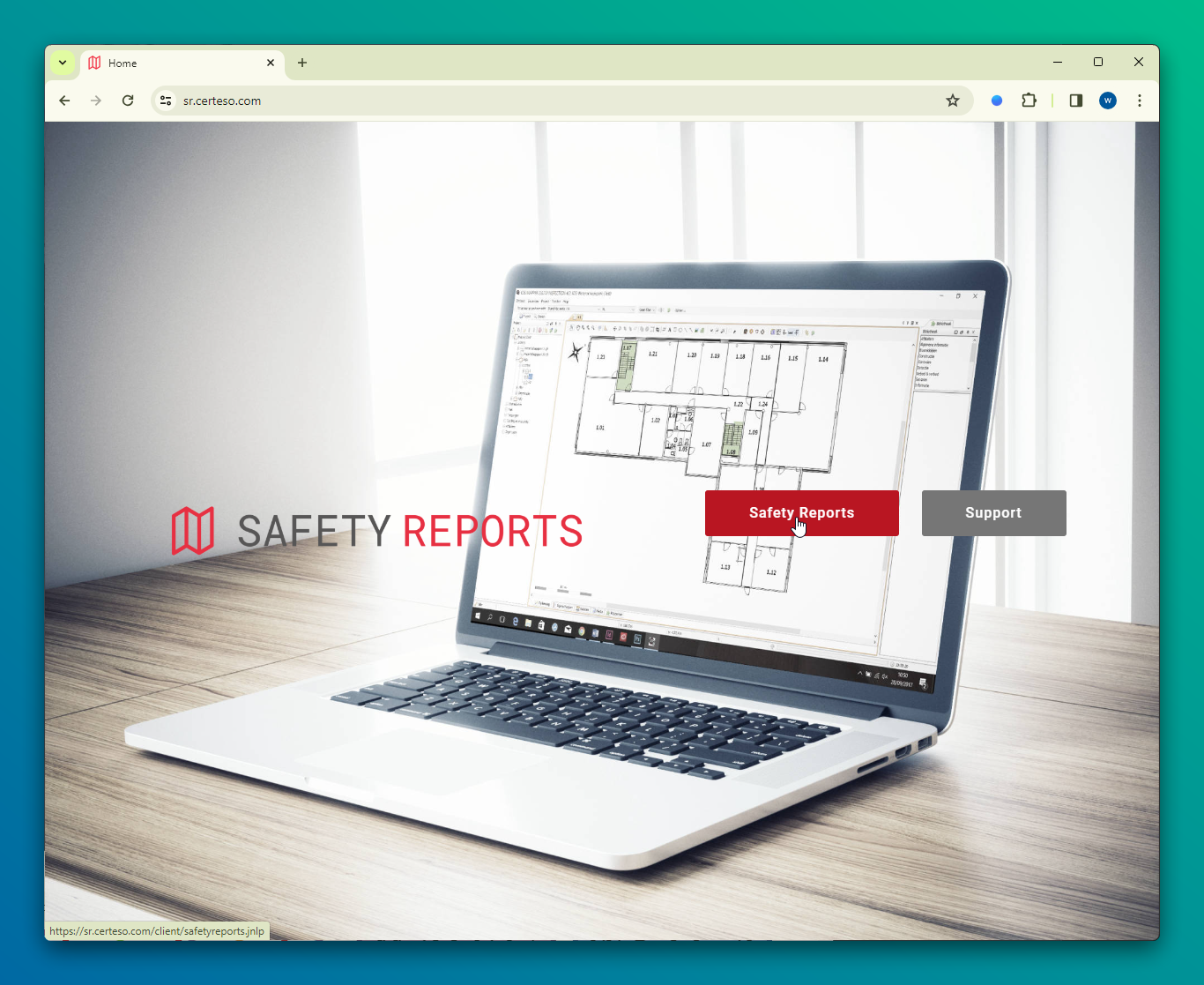 Open de pagina sr.certeso.com en druk op de knop "Safety reports".