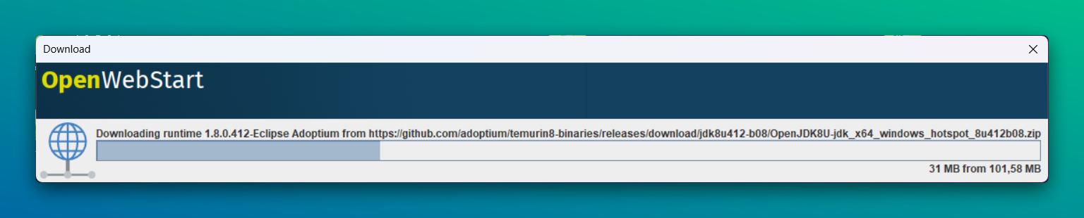 De eerste keer zal OpenWebStart ook de juiste versie van Java downloaden.
